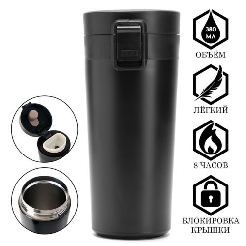 * Термокружка выполнена из нержавеющей стали, поэтому устойчива к механическим повреждениям.