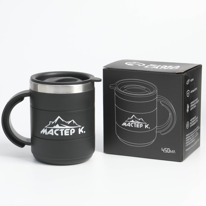Термокружка, 450 мл, «Мастер К», сохраняет тепло 2 ч, черная