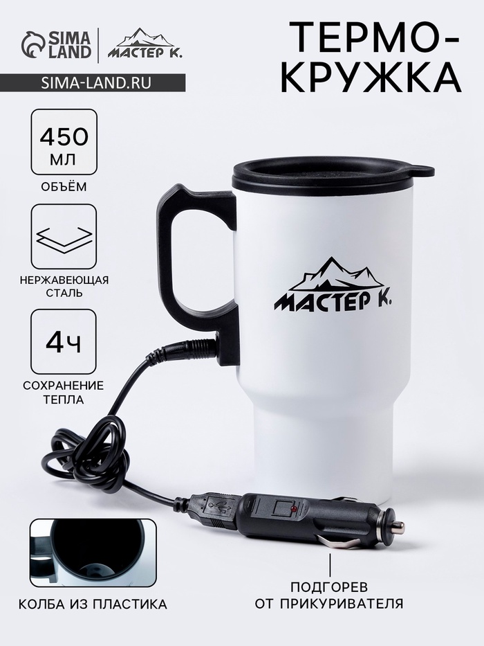 Термокружка автомобильная, 450 мл, «Мастер К», сохраняет тепло 4 ч, 12×17 см, белая