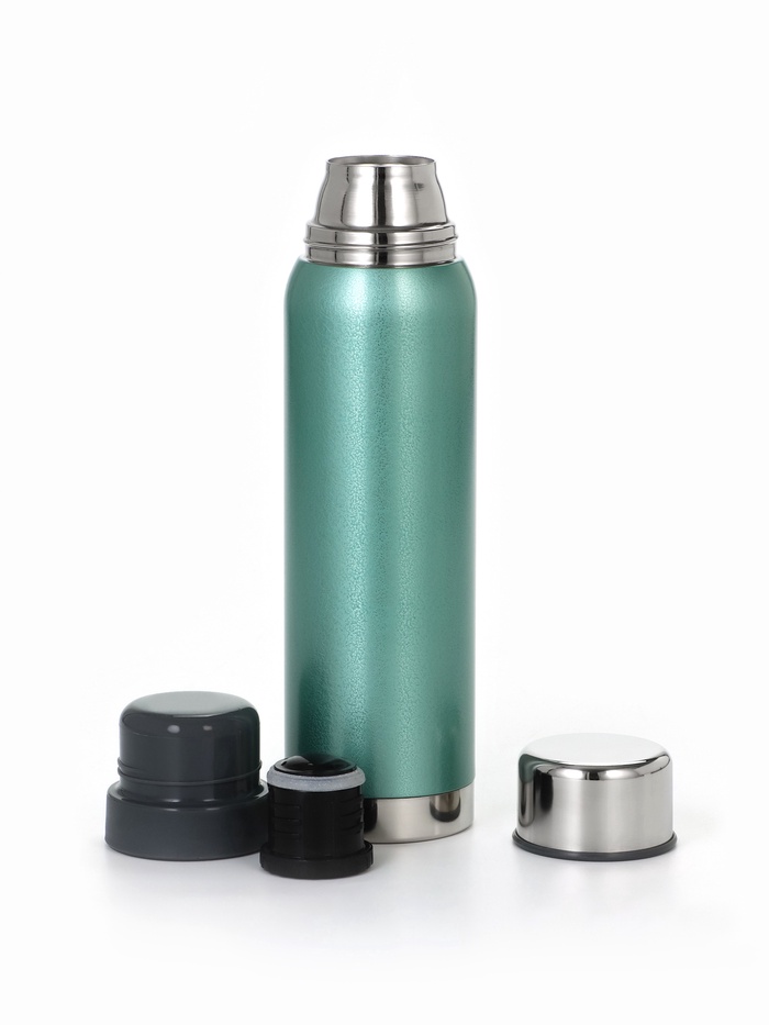 Термос Мастер К, 1 л, 2 крышки-кружки, нержавеющая сталь, бирюзовый