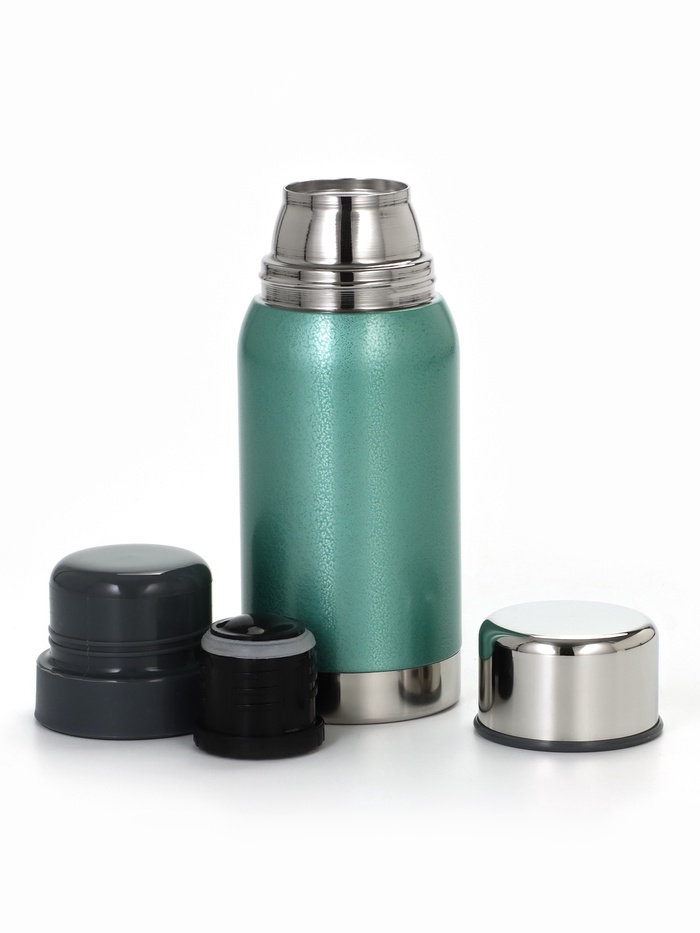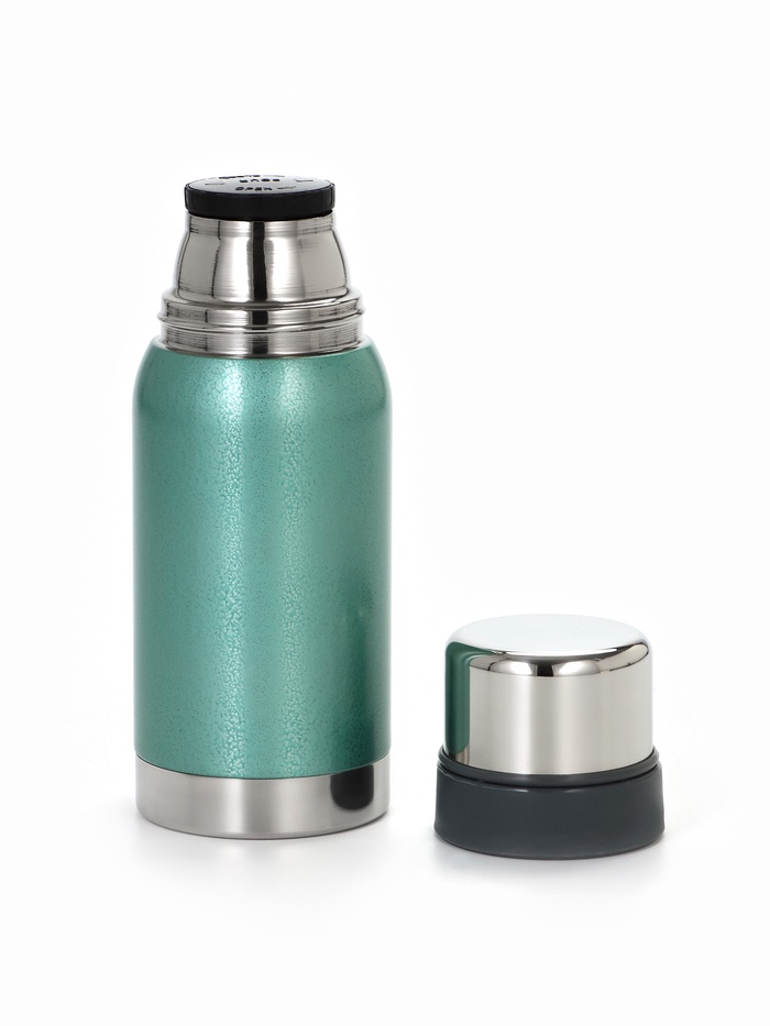 * Стиль без отвлекающих деталей: бирюзовый корпус выделяется на фоне стандартных термосов. Гладкая поверхность без рисунков легко моется и не теряет вид со временем.