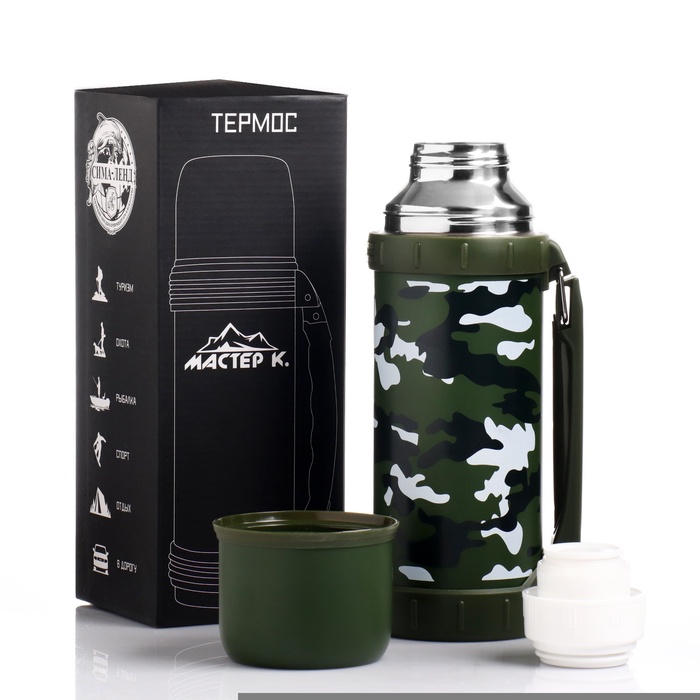 Термос Мастер К «Движение», 1.2 л, 11×29 см, с кружкой, сохраняет тепло 18 ч, нержавеющая сталь, зелёный