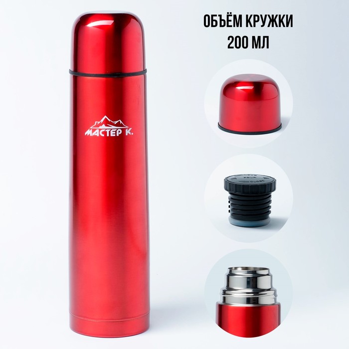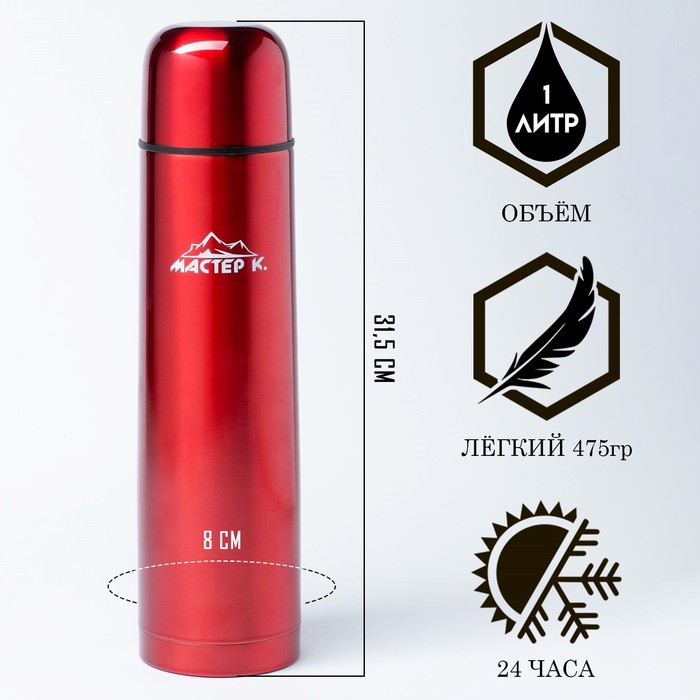 Термос Мастер К «Гильза», 1 л, с кружкой, сохраняет тепло 24 ч, нержавеющая сталь, красный
