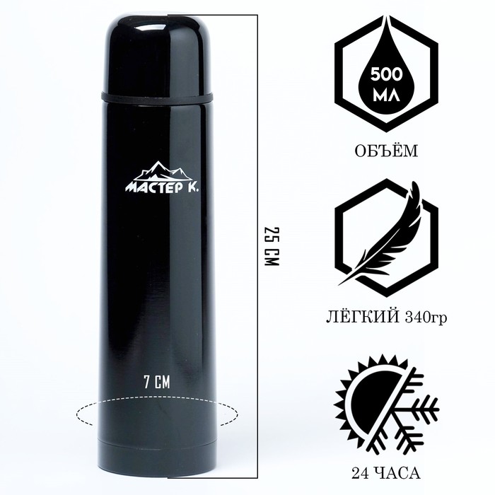 Термос гильза Мастер К, 500 мл, 25×7 см, с кружкой, сохраняет тепло 24 ч, нержавеющая сталь, чёрный