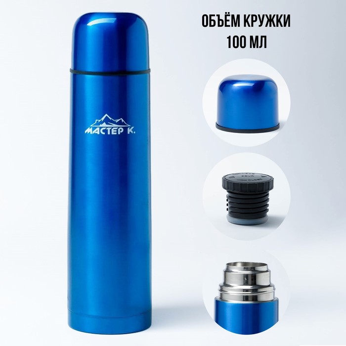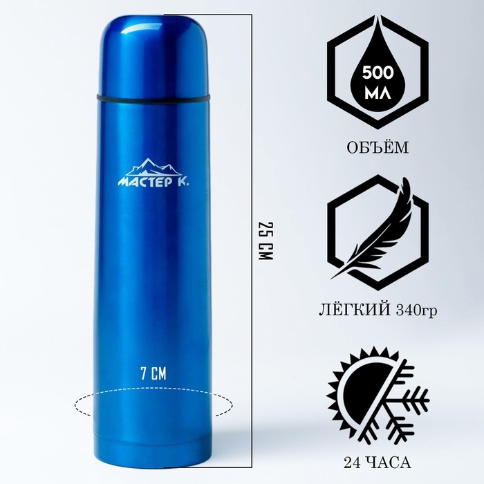 Термос Мастер К «Гильза», 500 мл,25×7 см, с кружкой, сохраняет тепло 24 ч, синий