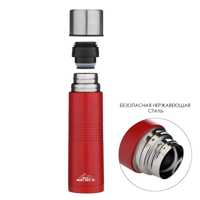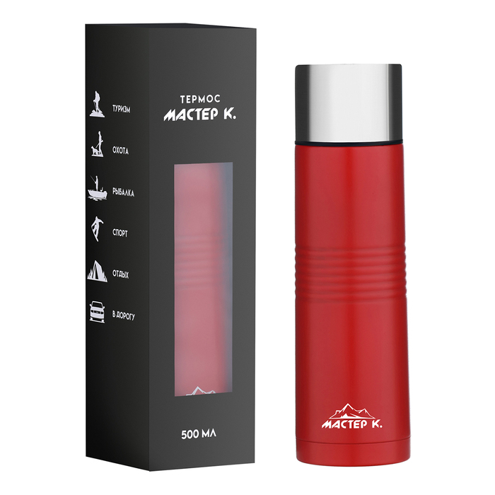 Термос Мастер К Space, 500 мл, с кружкой, сохраняет тепло 8 ч, нержавеющая сталь, красный