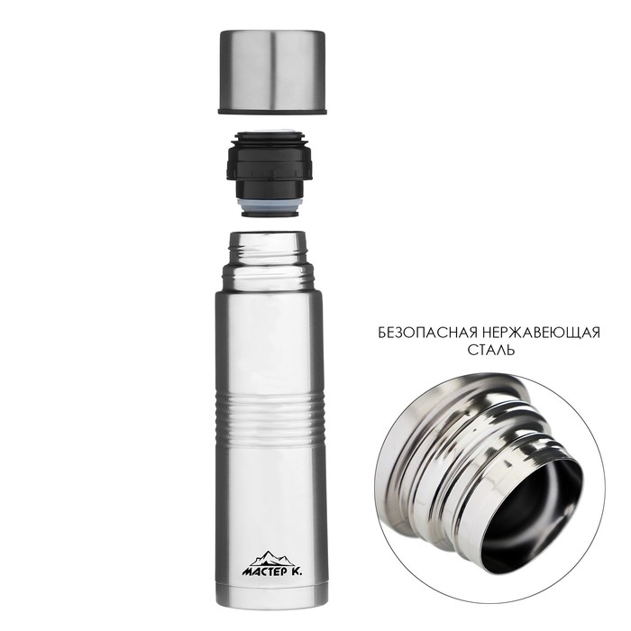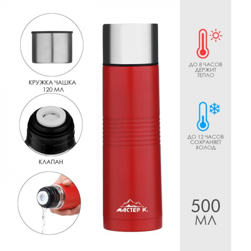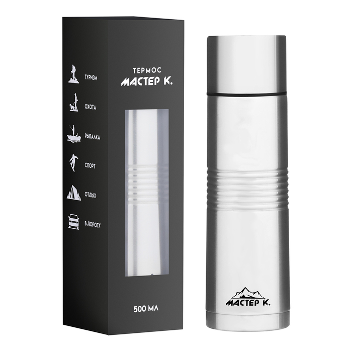 Термос Мастер К Space, 500 мл, с кружкой, сохраняет тепло 8 ч, нержавеющая сталь, серебристый