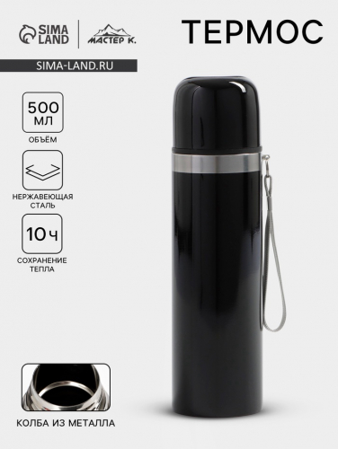 Компактный, экологичный, стильный. Термосы этой серии пользуются большой популярностью у активных и динамичных пользователей, а так же у любителей охоты и рыбалки, так как они, сохраняют прочность и термоустойчивость, легки и компактны. Этот термос просто идеально подойдет для тех, кто ценит свое время и хочет наслаждаться свежим и горячим кофе, чаем или другими любимыми напитками в любой ситуации. Термос "Мастер К" 500 мл (0.5 л) это яркое решение для любителей чая, кофе, травяных, ягодных и фруктовых заварок. Летом данный термос станет приятным спутником на пляж и в жаркий день, так как он сохраняет напиток холодным.