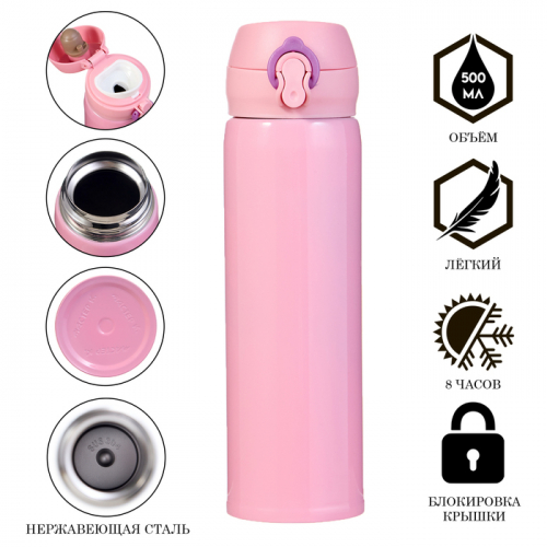 Термос Мастер К «Топ», 500 мл, сохраняет тепло 8 ч, нержавеющая сталь, микс