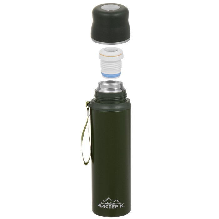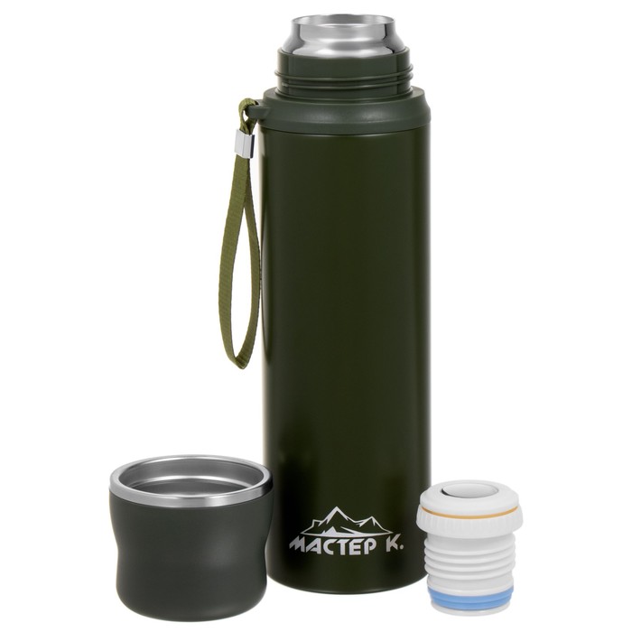 Термос Мастер К Traveller, 1 л, с кружкой, сохраняет тепло до 12 ч, нержавеющая сталь, зелёный