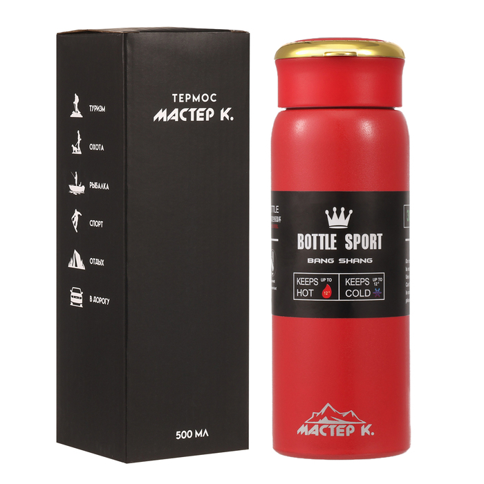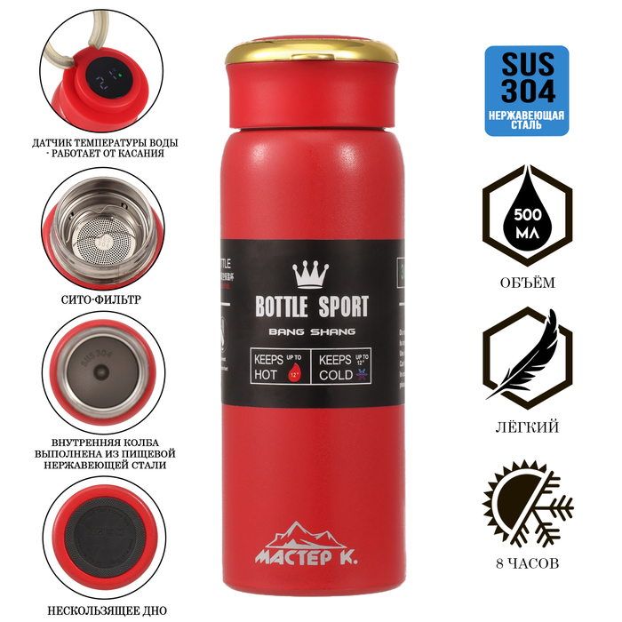Термос Мастер К Traveller, 500 мл, сохраняет тепло до 8 ч, нержавеющая сталь, красный