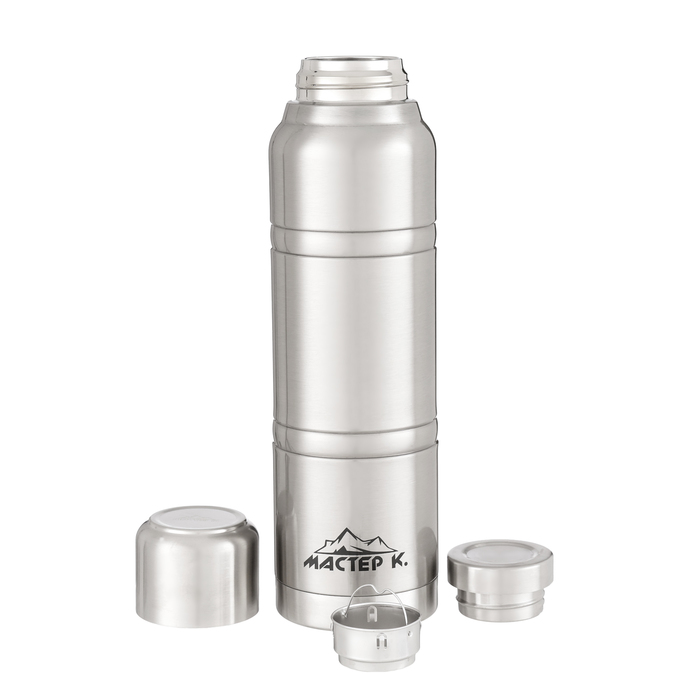 Термос Мастер К Warm, 1.5 л, c кружкой, с ситечком, сохраняет тепло 24 ч, чехол, нержавеющая сталь