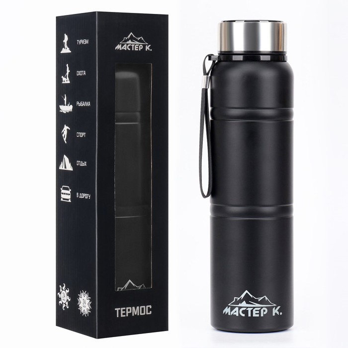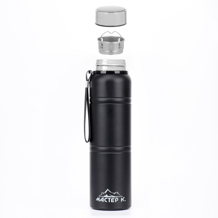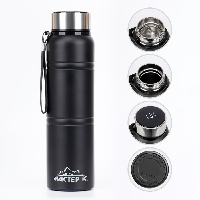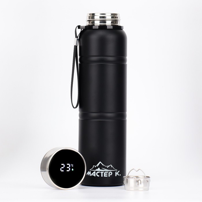 Термос Мастер К Warm, 850 мл, с ситечком, с датчиком температуры, сохраняет тепло 24 ч, нержавеющая сталь, чёрный