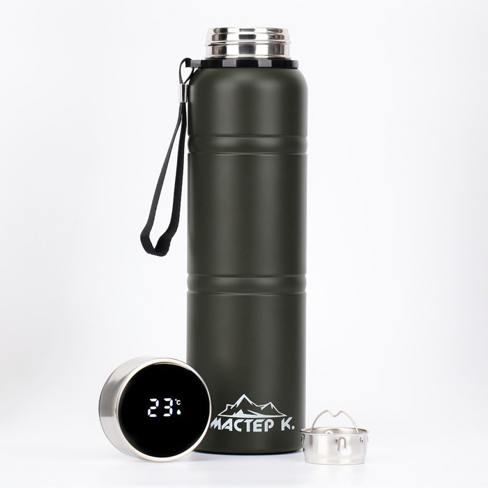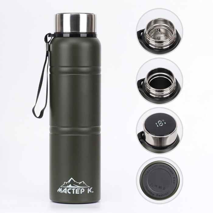 Термос Мастер К Warm, 850 мл, с ситечком, с датчиком температуры, сохраняет тепло 24 ч, нержавеющая сталь, зелёный