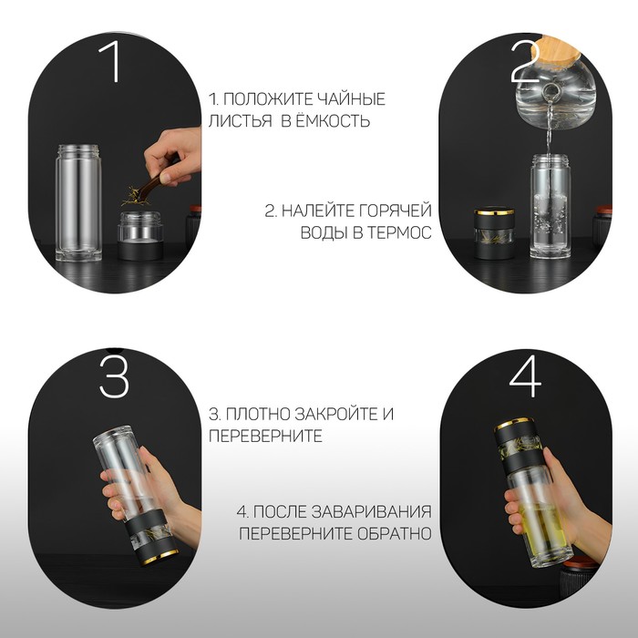 * Компактность и эргономичность: Удобные размеры и продуманный дизайн делают термос-заварник идеальным выбором для активного образа жизни.