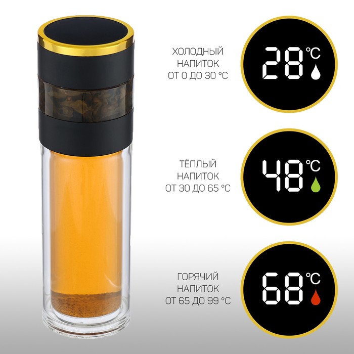 Термос — заварник Мастер К, 420 мл, с термометром, сохраняет тепло до 12 ч, черный