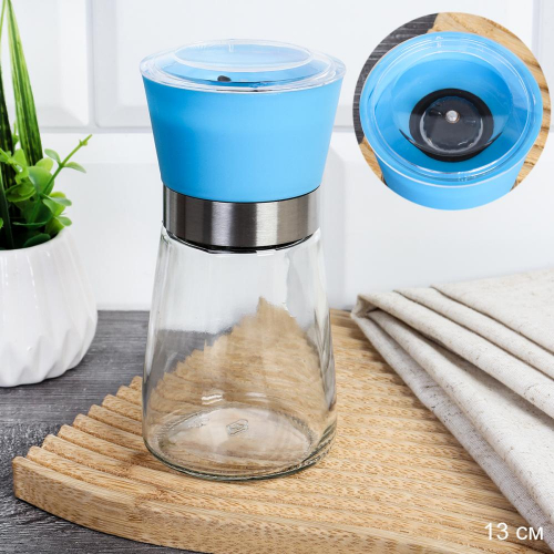 Мельница для специй и соли 13 см с крышкой/ W-456-A /уп 80/ Лазурная