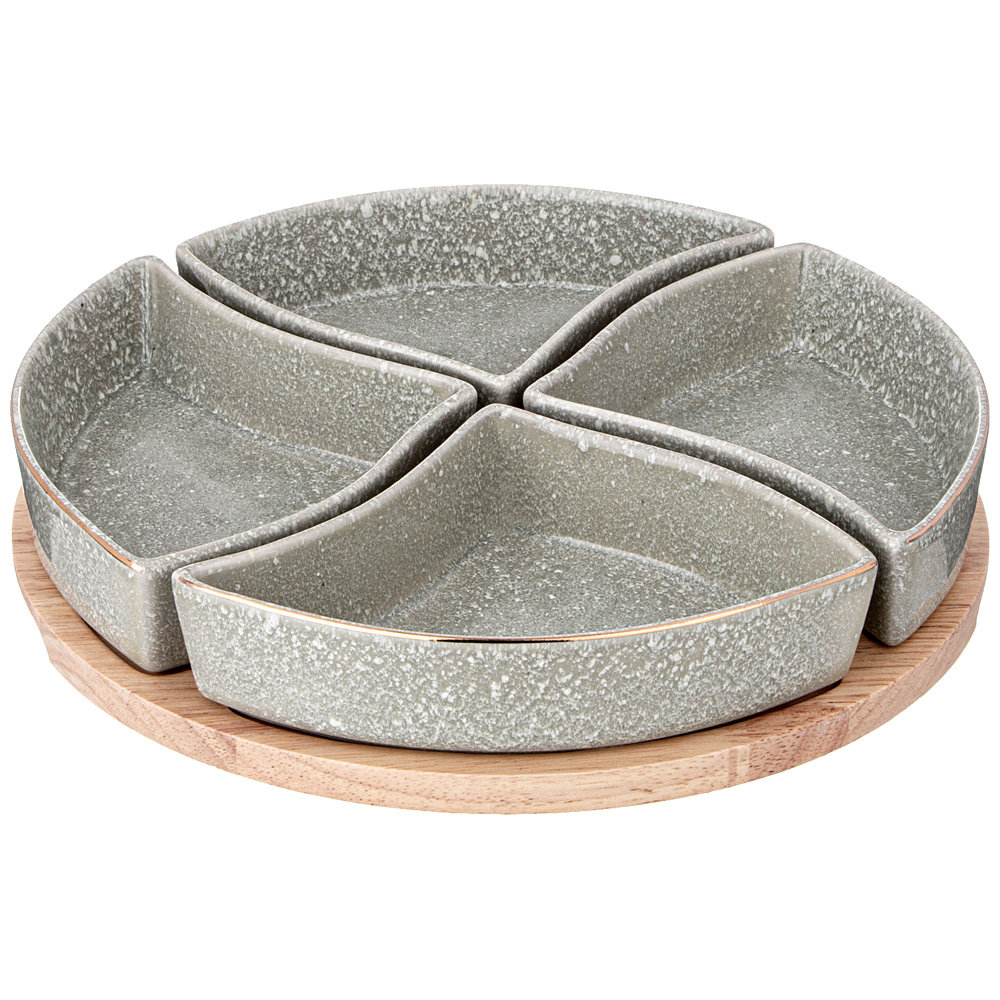 TM Lefard коллекция «Grain» - это модная сервировка стола и стильный кухонный интерьер в трендовых серых и мятных цветах с золотой окантовкой. Блюда и формы различных размеров, менажницы на бамбуковых подставках, банки, тарелки и салатники различного назначения, чайники, чайные пары и кружки выполнены из упрочненного фарфора. Четкие линии, сверкающее глянцевое покрытие. Вы и Ваш стол неотразим!