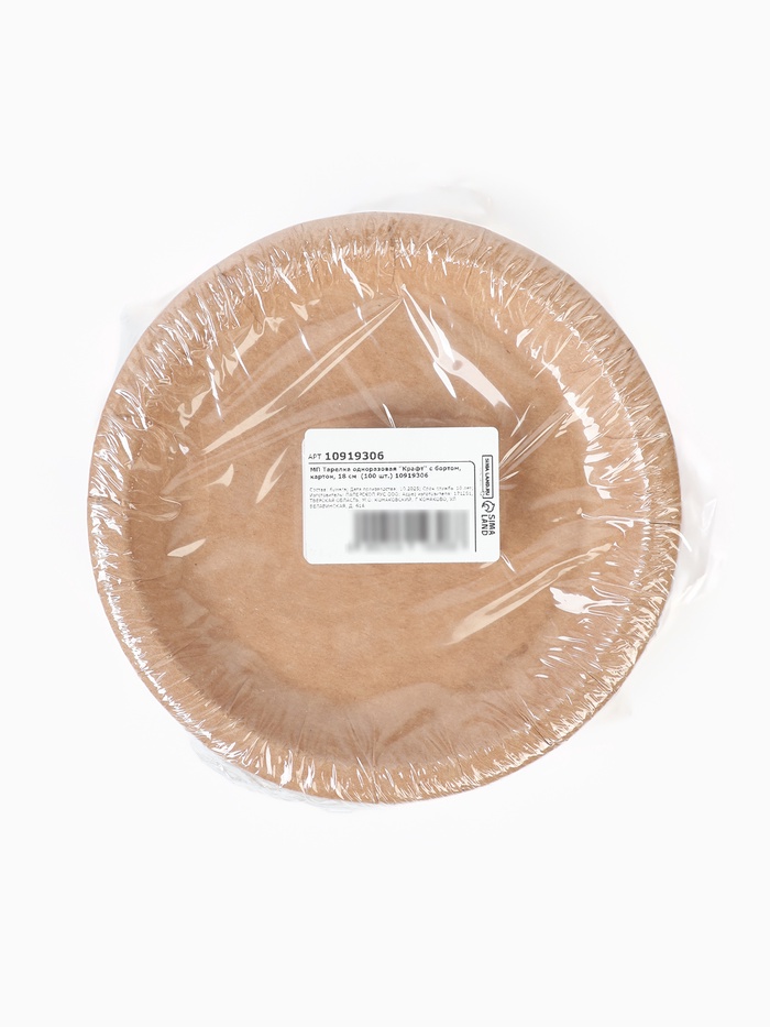 МП Тарелка одноразовая «Крафт» с бортом, картон, 18 см (100 шт.)