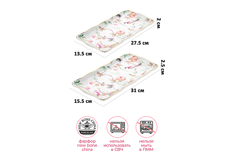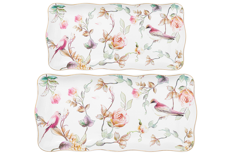 Набор 2 блюд 27,5*13,5*2 см + 31*15,5*2,5 см "Певчие птички" NEW BONE CHINA, фарфор