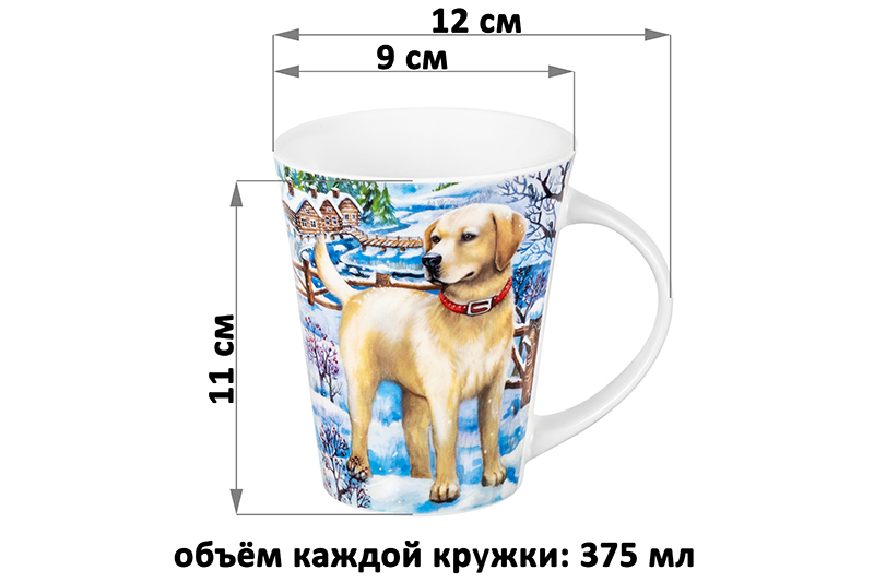 Набор 2 кружек 375 мл 12*9*11 см "Хаски и Лабрадор", фарфор