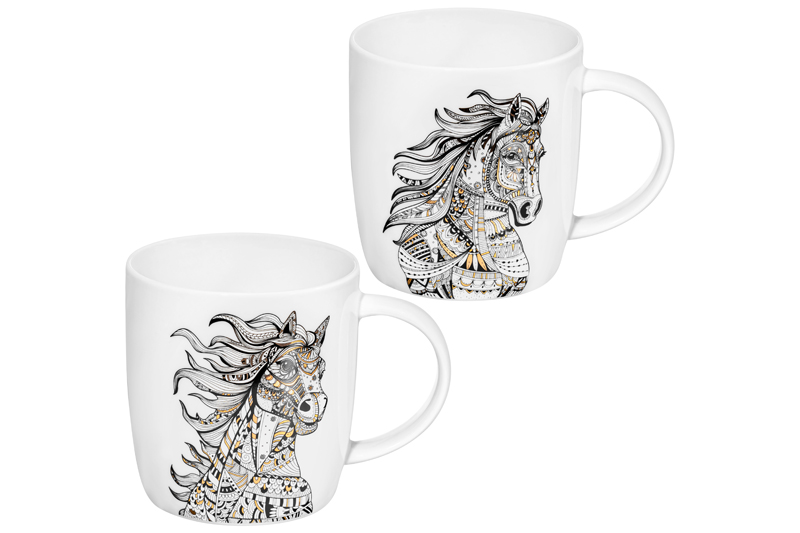 Набор 2 кружек 380 мл 12,5*9*9,3 см "Лошади" NEW BONE CHINA