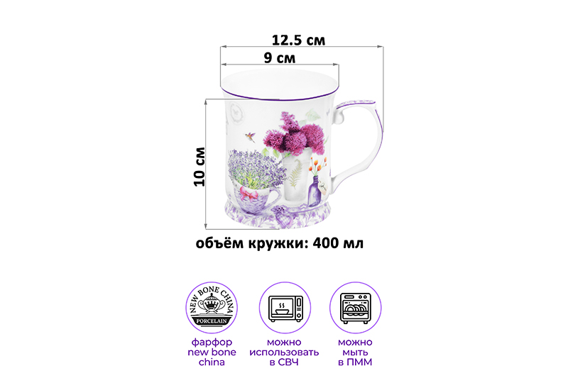 Набор 2 кружек 400 мл 12,5*9*10 см "Лаванда" NEW BONE CHINA