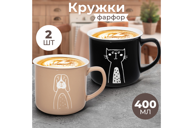 Набор 2 кружек 400 мл 12,5*9,5*8,8 см "Кот и пёс", фарфор