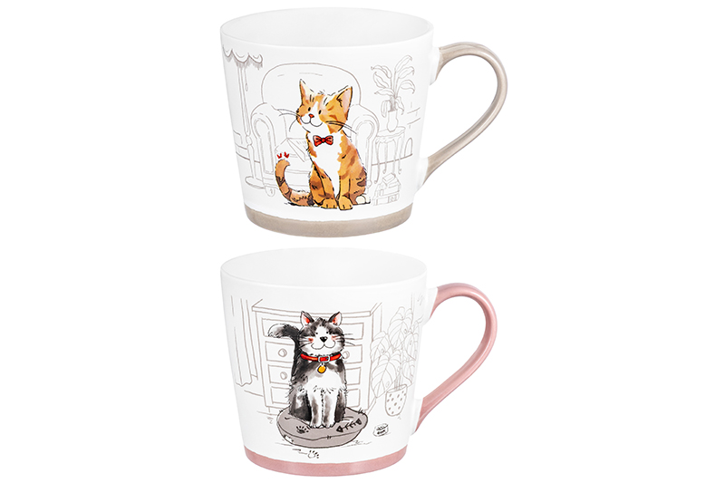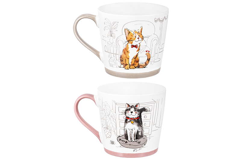 Набор 2 кружек 400 мл 13,5*9,5*9 см "Довольные коты", фарфор