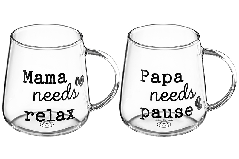 Набор 2 кружек из серии Crystal glass от Elan Gallery предназначен для эстетичной сервировки вашего стола. Размер каждой ёмкости – 11,5*9*9,5 см, объём – 420 мл. Выполнены из термостойкого боросиликатного стекла. Жаропрочный материал выдерживает от -20 °C до +150 °C и позволит наслаждаться напитками любой температуры. Не имеет в составе вредных веществ, не впитывает запахи и вкусы. Прозрачную поверхность изделий украшают декоративные надписи «Mama needs relax» («Маме надо расслабиться») и «Papa needs pause» («Папе нужна пауза»). Кофейные кружки помогут провести множество приятных завтраков с капучино и латте, а также уютные чайные вечера с конфетами, вафлями и другими десертами и сладостями. Подойдут ценителям чая и кофе, которые любят пить из красивой и необычной посуды. Согрейтесь зимой любимым напитком: какао с маршмэллоу, ягодным чаем или горячим шоколадом. Летом освежитесь домашним лимонадом или морсом. Парные кружки станут идеальным дополнением романтического чаепития или уютного семейного ужина. Не рекомендуется применять абразивные моющие средства. Подходят для использования в микроволновой печи. Не подходят для посудомоечной машины. Поставляются в дизайнерской картонной коробке – благодаря ей вам не потребуется дополнительная подарочная упаковка. В серии Crystal glass можно найти много разнообразных кувшинов и графинов, которые подходят для горячей жидкости. Красивая посуда, кухонный инвентарь и товары для дома от бренда Элан Галерея позволят создать уют на вашей кухне или в столовой!