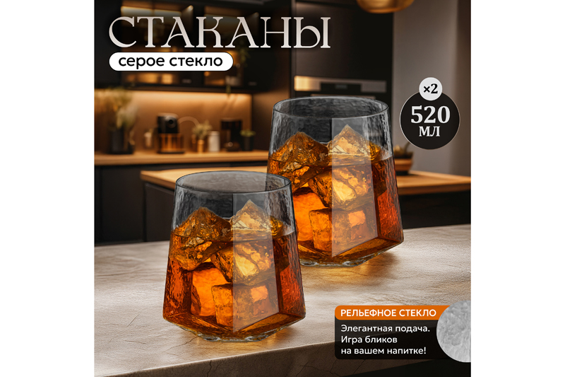 Набор 2 стаканов 520 мл 10*10*11 см "ICE", графит