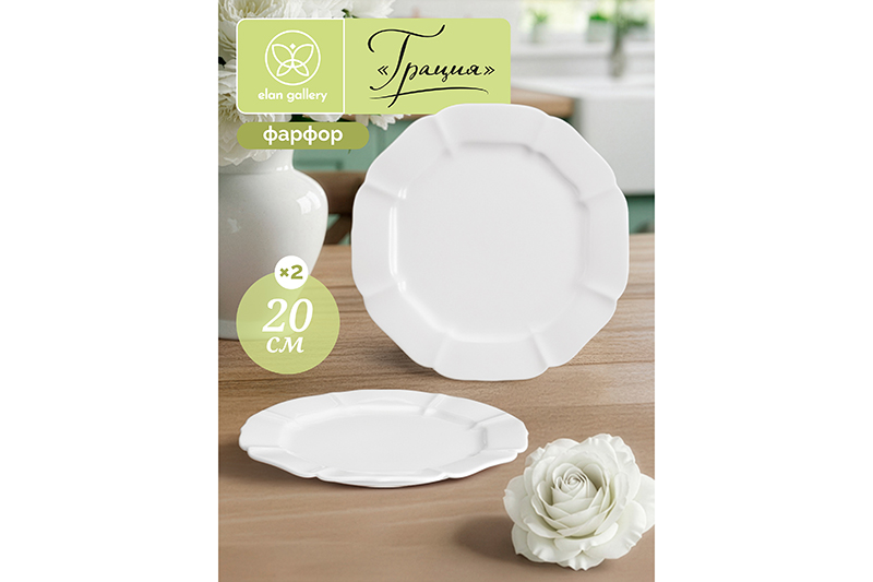 Набор 2 тарелок 20*20*1,5 см "Грация", фарфор