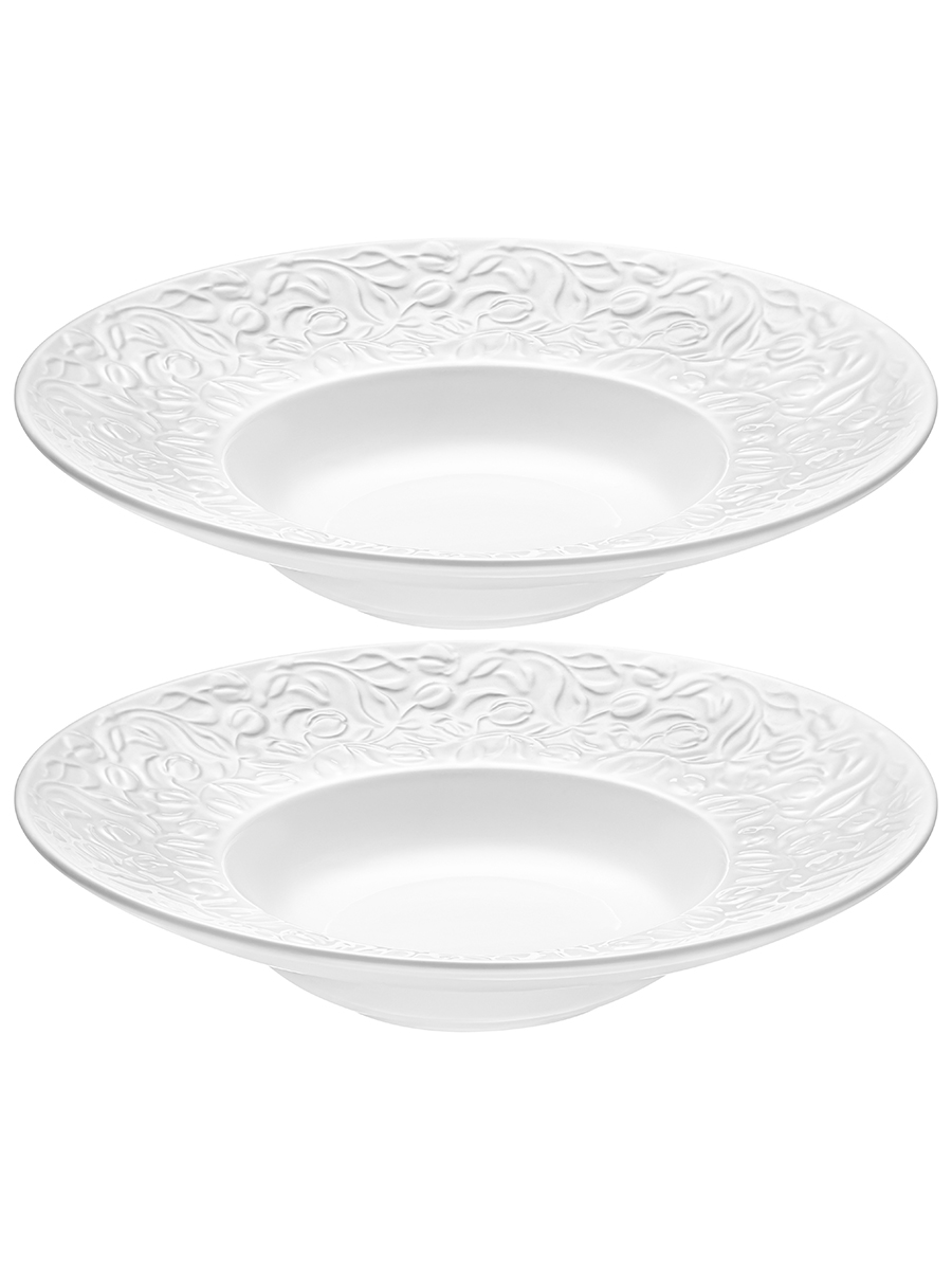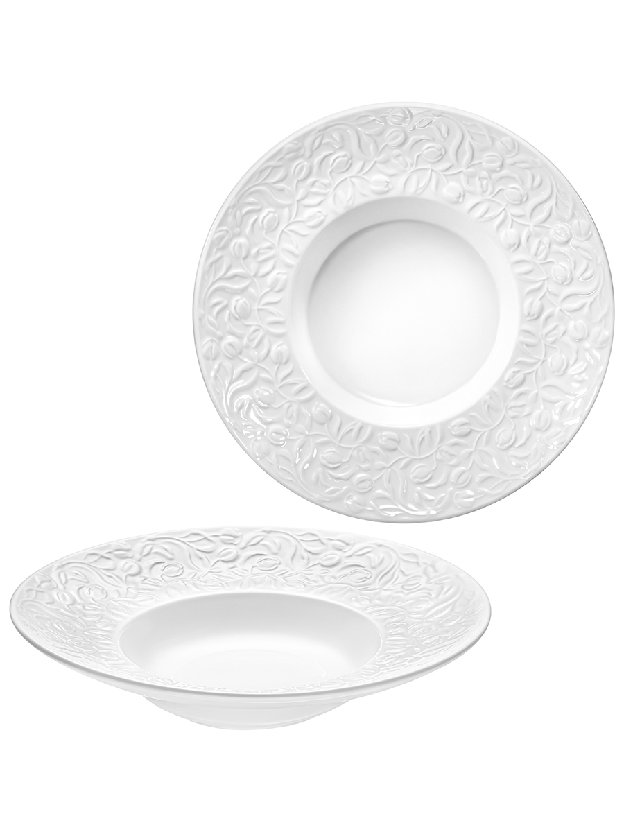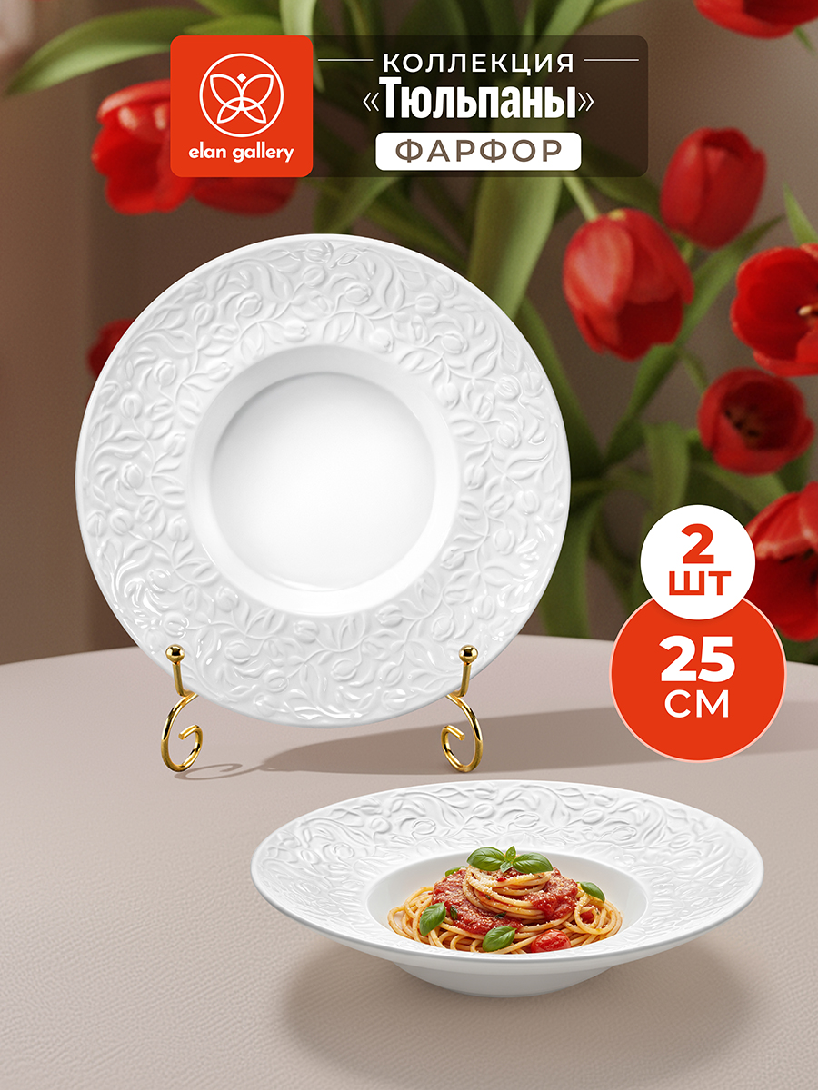 Набор 2 глубоких тарелок Elan Gallery "Тюльпаны" выполнен из белого фарфора. Размер каждого изделия — 25х25х5,5 см, объём – 270 мл. Внутренний диаметр 13,5 см. Фарфоровые изделия легко отмываются, поэтому надолго сохраняют привлекательный вид и практичны в использовании. Посуда, украшенная рельефом в виде цветов, станет изящным дополнением интерьера любой кухни или столовой. Глубокие тарелочки подойдут для подачи супов, бульонов и каш. Эргономичная форма позволяет использовать их не только для первых блюд, но и рагу, салатов и пасты. Красивые блюда подойдут для сервировки как на праздник, так и в будни. Не рекомендуется применять абразивные моющие средства. Суповые тарелки подходят для использования в посудомоечной машине и микроволновой печи. Поставляются в красивой картонной коробке – благодаря ей вам не потребуется дополнительная подарочная упаковка. Набор станет приятным подарком на любой праздник. В коллекции бренда Элан Галерея можно найти много красивой посуды, кухонного инвентаря и товаров для дома. Коллекция "Тюльпаны" позволит собрать сервиз в едином стиле и станет украшением вашей кухни!