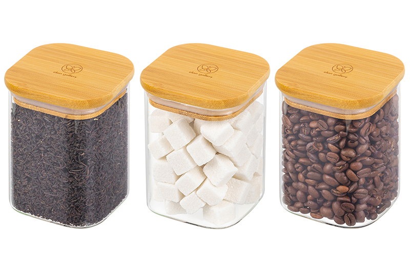 Набор 3 банок д/хранения 450 мл 8*8*11 см "Crystal glass" + бамбук.крышка с силик. проклад,стекло