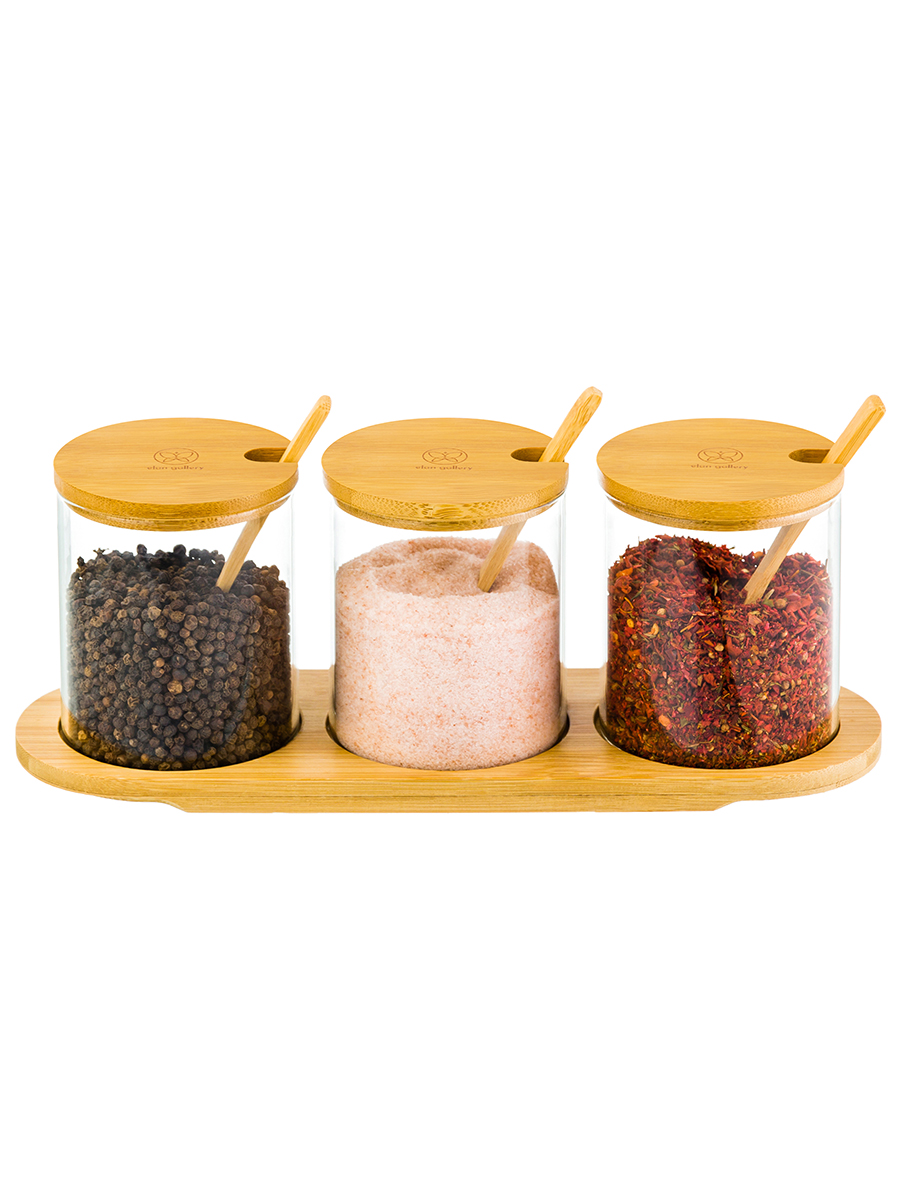 Набор 3 банок д/специй 350 мл 29*9,5*10,5 см "Crystal glass" + бамб.крышка+ложка+бамб.подставка