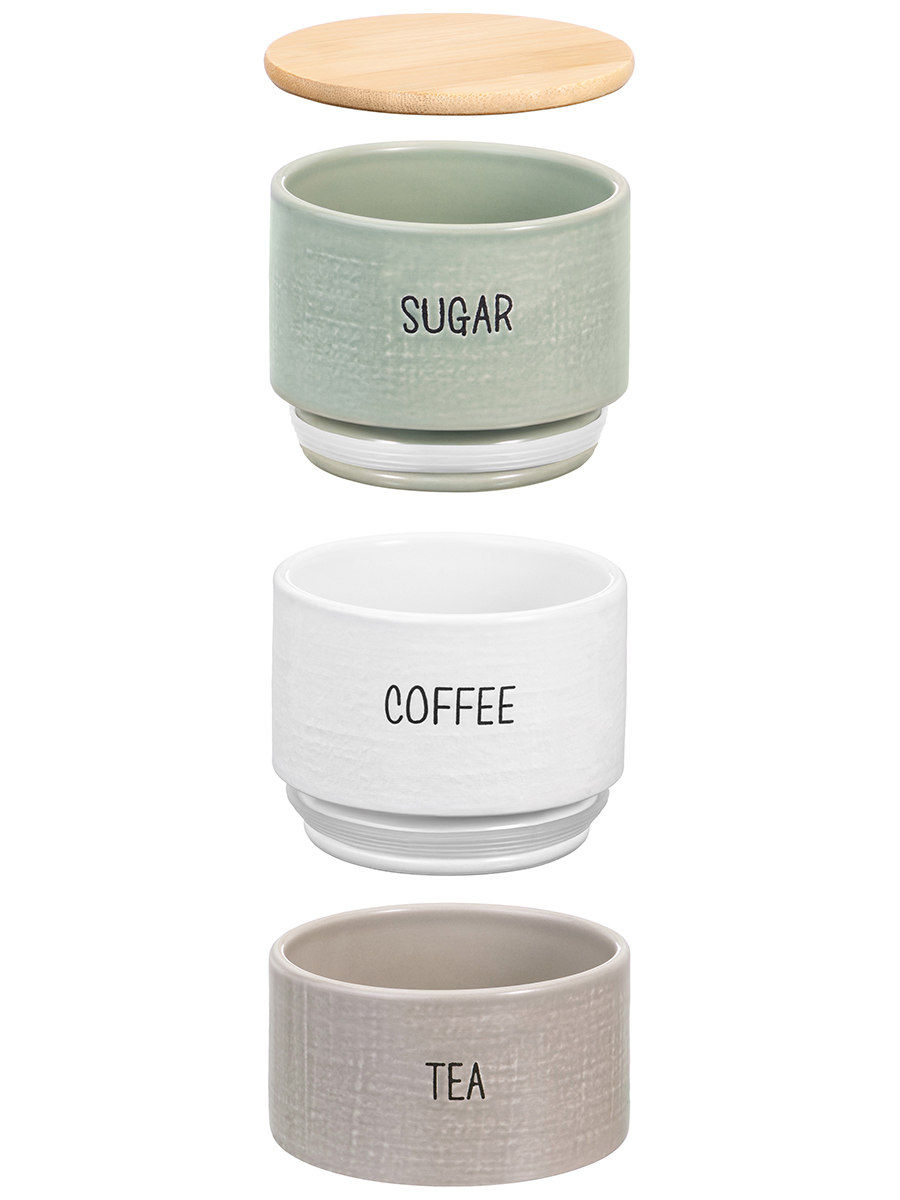Набор 3 банок д/сыпучих продуктов 500 мл 11*11*19,5 см "Coffee,Tea,Sugar" зел,бел,сер,с бамб.крышкой