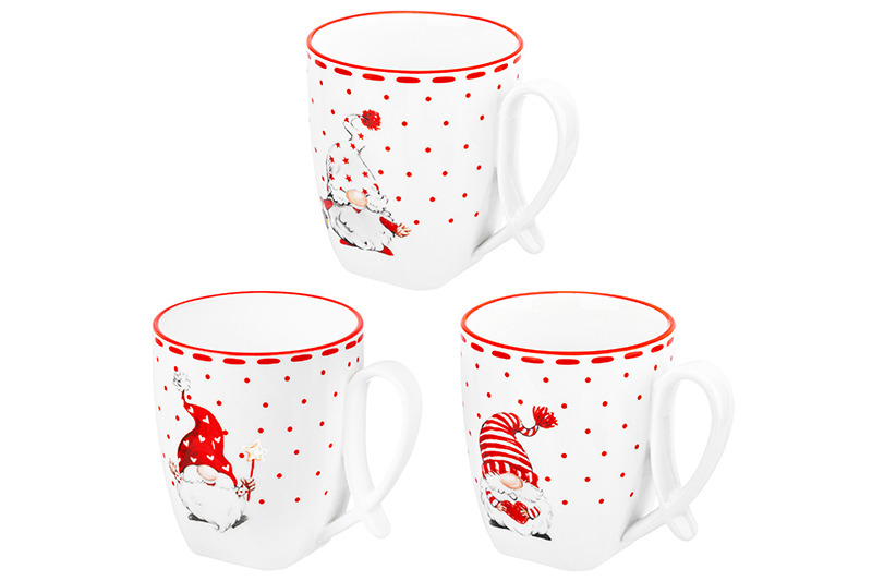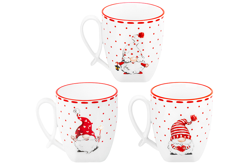Набор 3 кружек из серии «Весёлые гномики» от Elan Gallery предназначен для эстетичной сервировки вашего стола. Размер каждой ёмкости – 10,5х8х9 см, объём – 300 мл. Выполнены из высококачественного белого фарфора. Он не впитывает цвет напитков и легко отмывается, благодаря чему надолго сохраняет свою белизну. Поверхность изделий украшает яркий рисунок в виде забавных гномиков. Мы создали коллекцию новогодних и рождественских товаров для сервировки и декора, которые наполнят пространство атмосферой уюта. Изделия помогут оформить интерьер праздничными композициями и добавят нотку зимнего волшебства. Кофейные кружки с фигурной ручкой-петлёй помогут вам провести множество приятных завтраков с капучино и латте, а также уютные чайные вечера с конфетами, вафлями, другими десертами и сладостями. Подойдут ценителям чая и кофе, которые любят пить из красивой и необычной посуды. Согрейтесь зимой любимым напитком: какао с маршмэллоу, ягодным чаем, горячим шоколадом или глинтвейном. Летом освежитесь домашним лимонадом или морсом. Фарфоровая посуда с изображением маленьких новогодних помощников привнесёт в любое помещение дух волшебства и праздника! Это оригинальный элемент вашего декора. Не рекомендуется применять абразивные моющие средства. Подходят для использования в посудомоечной машине и микроволновой печи. Поставляются в дизайнерской картонной коробке – благодаря ей вам не потребуется дополнительная подарочная упаковка. В коллекции бренда Elan Gallery представлены посуда, сувениры и украшения с новогодней символикой. Каждый подберёт оригинальный сюрприз для семьи, друзей и коллег на Новый год и Рождество. Такой подарок наполнит дом семейным теплом и духом праздника!