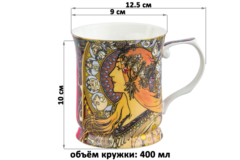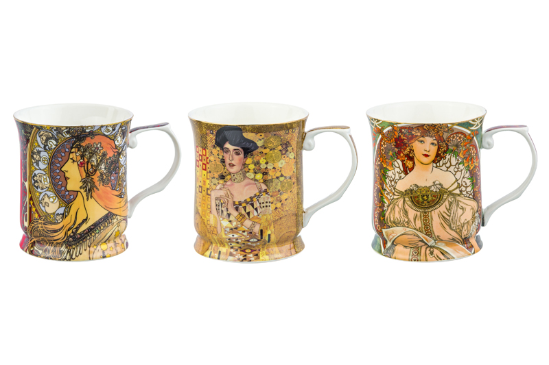 Набор 3 кружек Elan Gallery украшен изображениями по мотивам шедевров мировой живописи и выполнен из фарфора нового поколения new bone china. Благодаря современным технологиям он не уступает другим видам фарфора в прочности, но при этом экологичнее в производстве. В комплект входят кружечки с репродукциями картин знаменитых художников Альфонса Мухи ("Зодиак", "Мечтательность") и Густава Климта ("Золотая Адель"). Размер каждой – 12,5х9х10 см, объём – 400 мл. Они точно вызовут восхищение у ваших близких или гостей! Оригинальный дизайн добавит изысканности любому интерьеру вашей кухни или столовой. Фарфоровая кружка подходит ценителям чая и кофе, которые любят пить из красивой и необычной посуды. Это идеальный вариант для того, чтобы согреться горячим напитком зимой и освежиться прохладным лимонадом летом. Интересный бокал с удобной ручкой украсит ваш стол своим стильным дизайном как на праздник, так и в будни. Используйте каждую под любые напитки, например, как кофейную под капучино или латте. Красивая посуда станет украшением любого стола и незаменимым предметом на чаепитии или чайной церемонии! Из-за золотистого декора чашки нельзя использовать в микроволновой печи и мыть в посудомоечной машине. Станут приятным подарком как для мужчин, так и для женщин. Оригинальная кружка – это сюрприз для ценителей искусства на любой праздник. Поставляются в стильной коробке. Благодаря красочной коробочке вам не придётся искать дополнительную подарочную упаковку! В коллекции бренда Elan Gallery представлено много красивой посуды, кухонного инвентаря, предметов декора и других товаров для дома. Здесь вы найдёте всё для эстетичной сервировки и создания уюта!