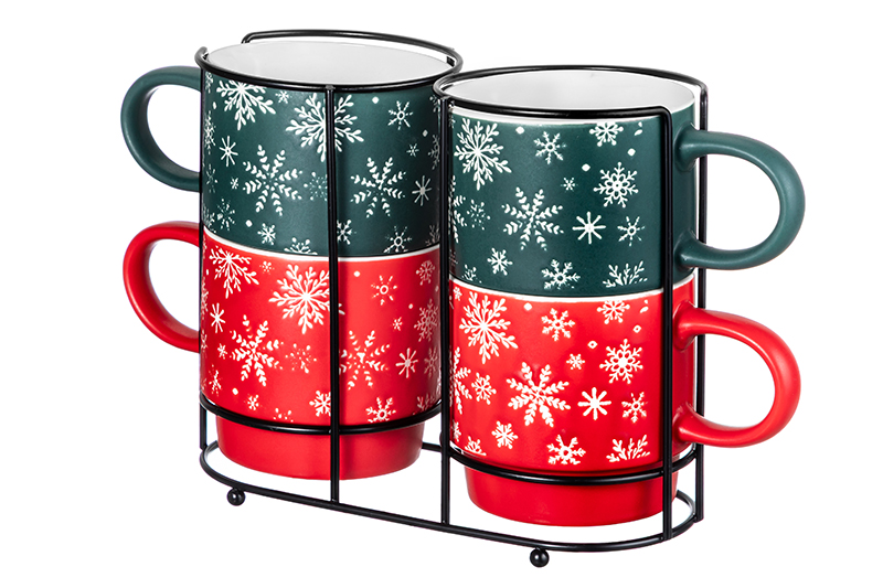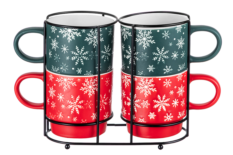 Набор 4 кружек 350 мл 13,5*9*8,5 см на металлической подставке