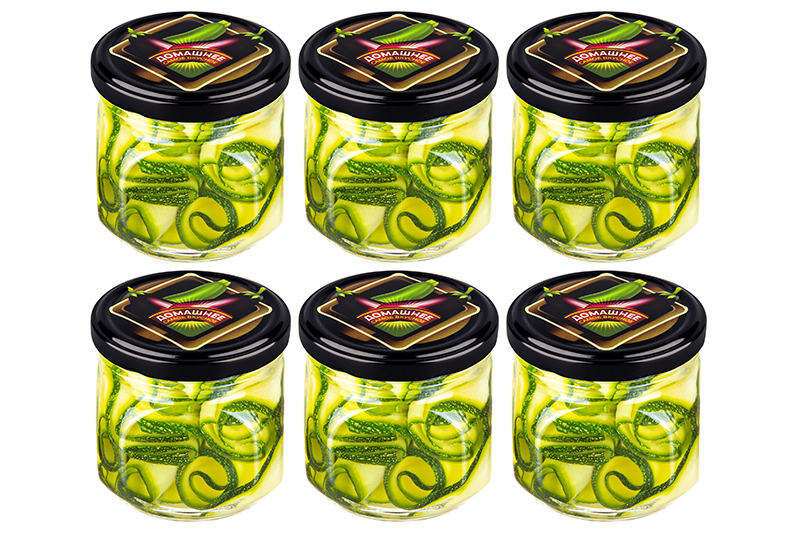 Набор 6 банок 350 мл 8,5*8,5*8,5 см с крышками "Баклажаны и кабачки" ТО-82 мм 8,2*8,2*0,8 см