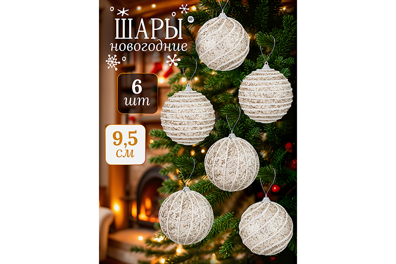 Набор 6 новогодних шаров 9,5*9,5 см "Полоски" шампань
