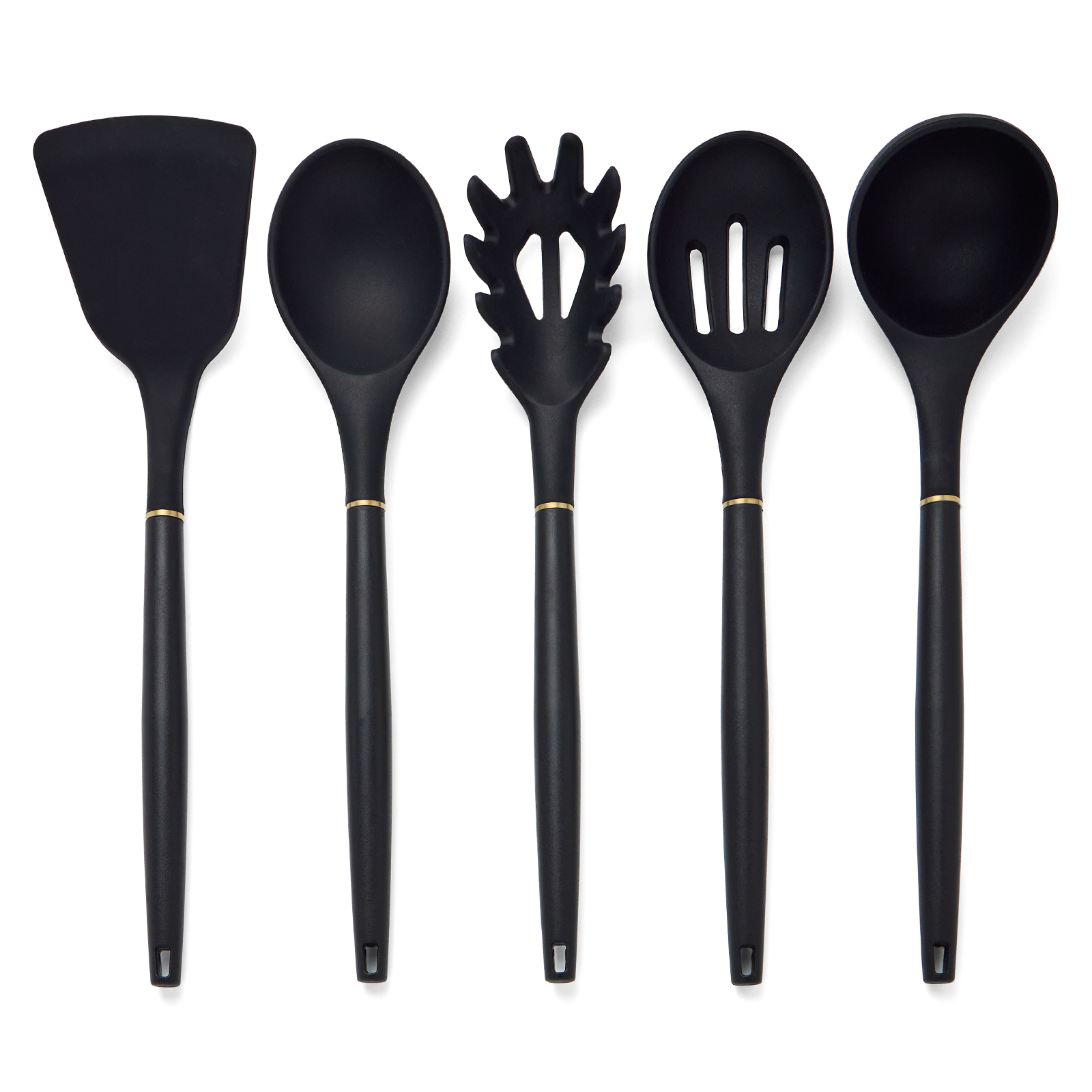 Состав набора: шеф нож 19,5см, нож для хлеба 20см, нож разделочный 20см, универсальный нож 12,5см, нож для овощей и фруктов 8,9 см, половник 31,5см, шумовка 32,3см, лопатка 32см, ложка 32,3см, ложка для спагетти 32 см, подставка 23,8х16,3 см
