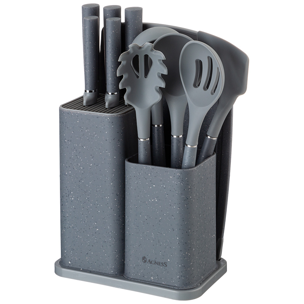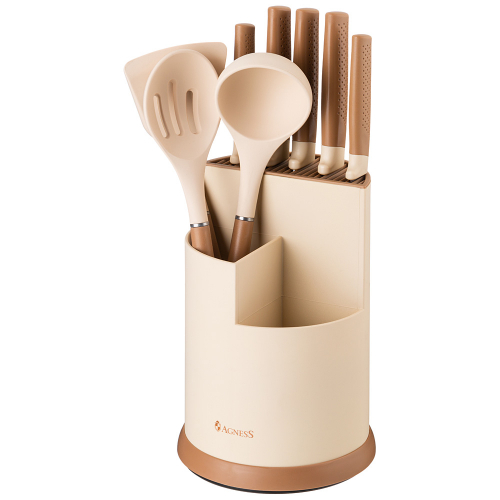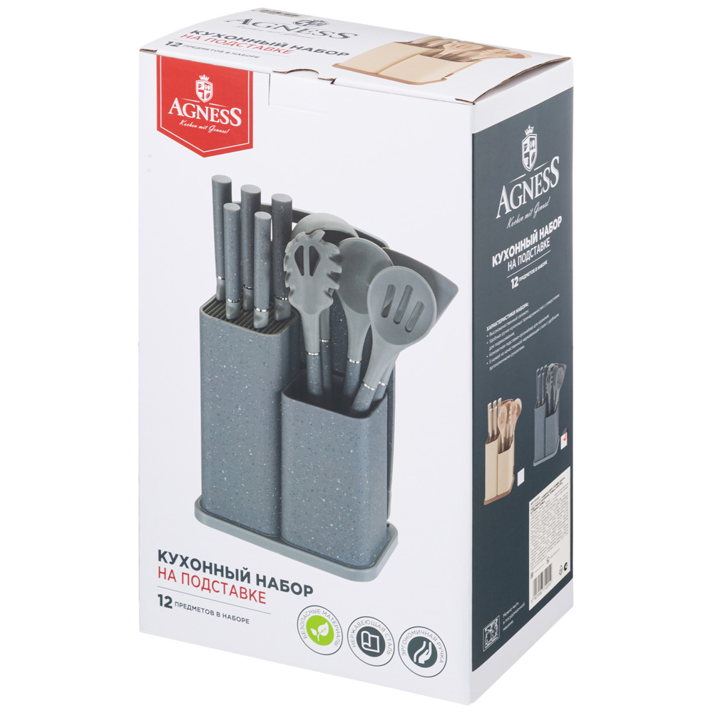 НАБОР AGNESS ИЗ 12ПР: 5 НОЖЕЙ,ДОСКА,ПОДСТАВКА,ПОЛОВНИК,ЛОЖКА,ЛОПАТКА,ШУМОВКА,ЛОЖКА ДЛЯ СПАГЕТТИ