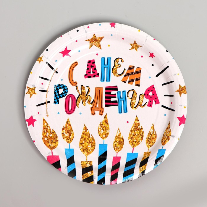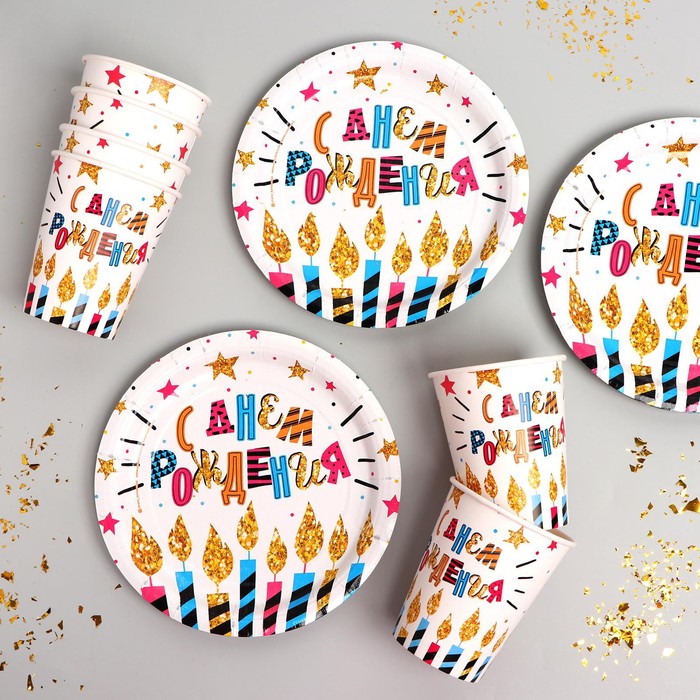 Посуда одноразовая бумажная «С днём рождения», на 6 персон, 12 предметов
