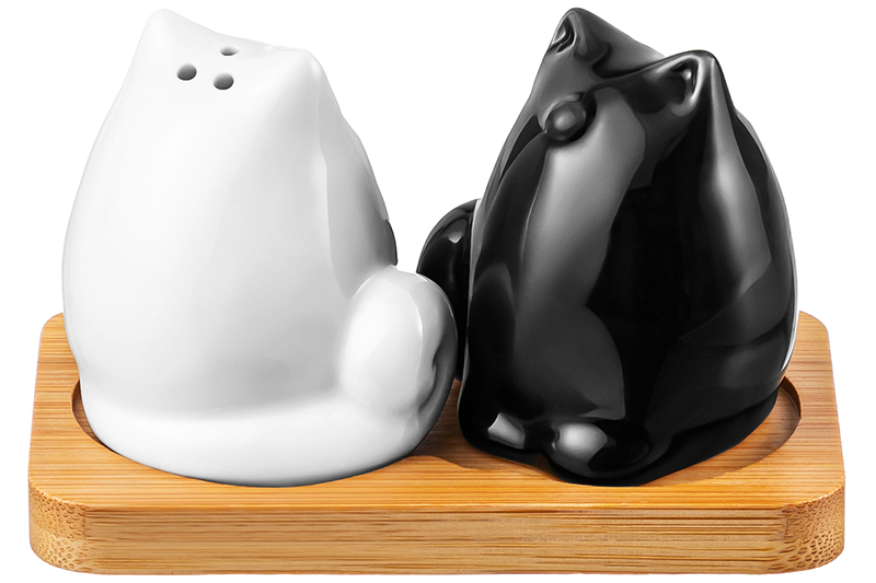 Набор для специй Elan Gallery "Котики" 10,5х6,5х6,5 см состоит из солонки и перечницы по 40 мл на бамбуковой подставке. Размер каждой фигурки – 5,5х4,5х5,5 см. Ёмкости для соли и перца украсят обеденный стол в будни и подойдут для красивой сервировки праздничного стола. Столовые принадлежности для хранения соли, перца или приправ позволят держать всё необходимое под рукой в процессе приготовления еды. Баночки в форме кошек выполнены из фарфора, который отличается от керамики повышенной плотностью. Фарфоровые контейнеры не впитывают цвет и не деформируются от влаги, чему может быть подвержена керамика. Фигурки наполняются через отверстия внизу, которые закрываются пластиковыми пробками. Баночки без подставки из бамбука можно мыть в ПММ (посудомоечной машине). Бамбук нельзя замачивать! Настольный набор поставляется в стильной картонной упаковке. Красивый кухонный инвентарь оценит любая хозяйка. Декоративный набор для специй в виде милых котиков станет украшением вашей кухни или приятным подарком для близких на любой праздник. Создайте в своем доме уютную атмосферу благодаря красивой фарфоровой посуде от Elan Gallery!