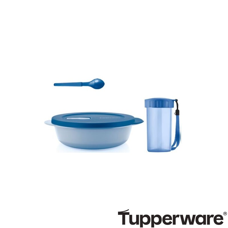 Набор для ланча состоит из ёмкости для разогревания с разделителем объёмом 900 мл, стакана с завинчивающейся крышкой объёмом 300 мл и ложечки.