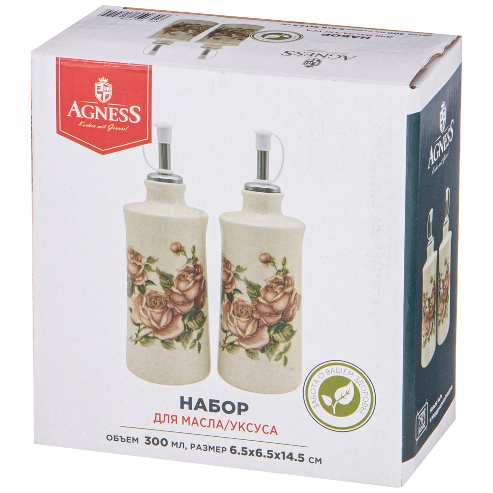 НАБОР ДЛЯ МАСЛА/УКСУСА "КОРЕЙСКАЯ РОЗА" 2ПР. 6,5*6,5 СМ. ВЫСОТА=14,5 СМ. / 300 МЛ. (КОР=16НАБ.)