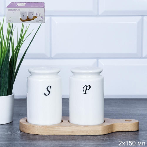 Набор для специй 2 предмета 150 мл / TN-425 /уп 36/ на деревянной подставке