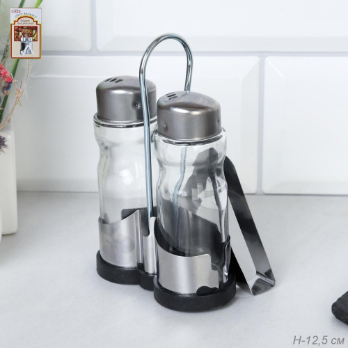 Набор для специй 2 предмета на подставке МЕТАЛЛ с ячейкой под салфетки / NB-613 /уп 72/нерж
