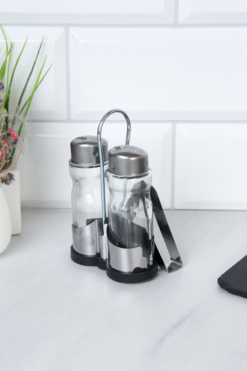 Набор для специй 2 предмета на подставке МЕТАЛЛ с ячейкой под салфетки / NB-613 /уп 72/нерж